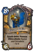 Tirion Vadín es una carta Lengendaria de Paladín del conjunto Clásico. Su Ultimo aliento equipa una Crematoria para el héroe.