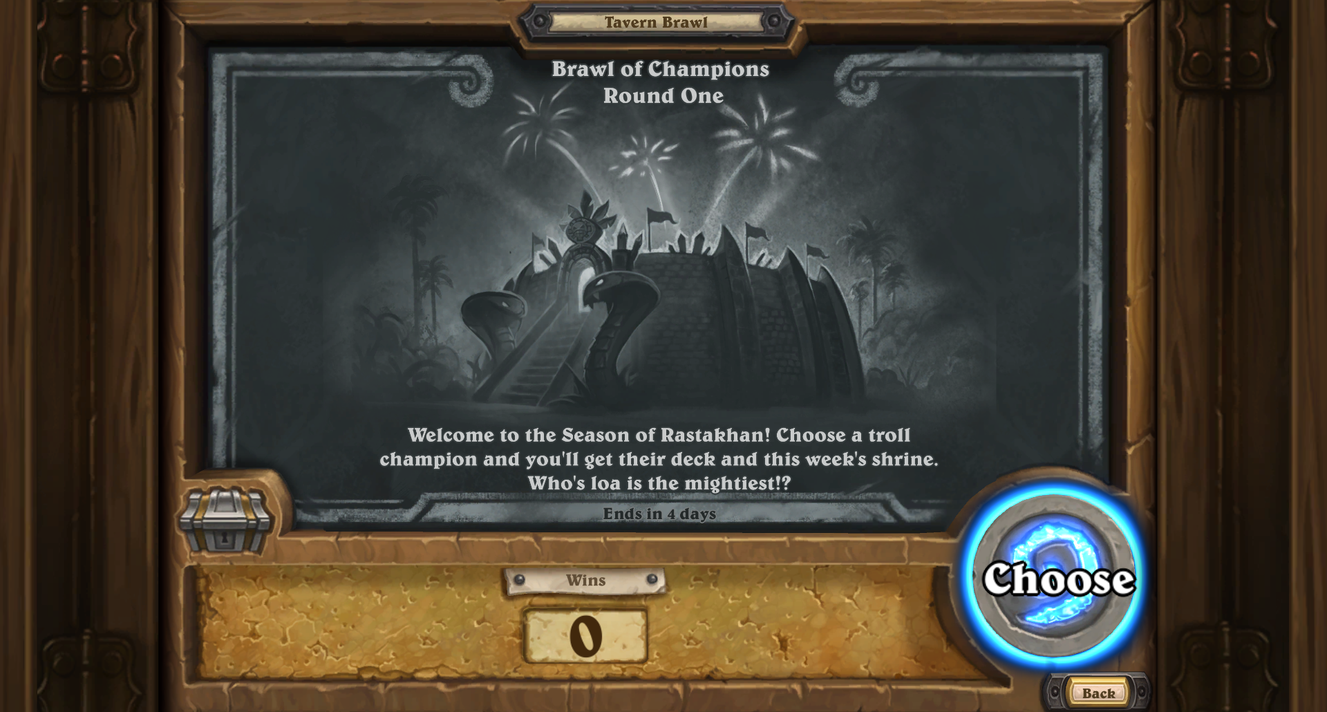 - "Welcome to the Season of Rastakhan! Choose a champion and you'll get their deck and this week's shrine. Who's loa is the mightiest!?"