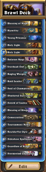 This Brawl revolves around decorating Stormwind for the upcoming celebration of Year of the Mammoth. It sees players competing with constructed decks of any class against the computer-controlled hero ![]()