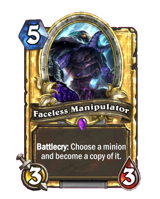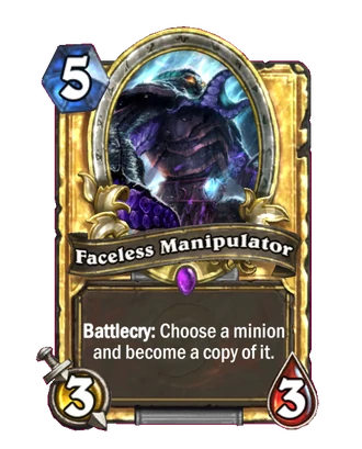 Faceless Manipulator is an epic neutral minion card, inducted into the Legacy set, formerly from the Classic set.