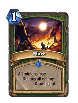 Flare is a hunter ability from World of Warcraft which allows the hunter to fire a small flare into a targeted area. The flare remains for 20 seconds, during which time it will expose any hidden, stealthed or invisible targets within 10 yards. Although it has no destructive abilities, like in Hearthstone Flare is the bane of anyone relying on secrets and concealment, and is one of the only ways to counteract these effects.