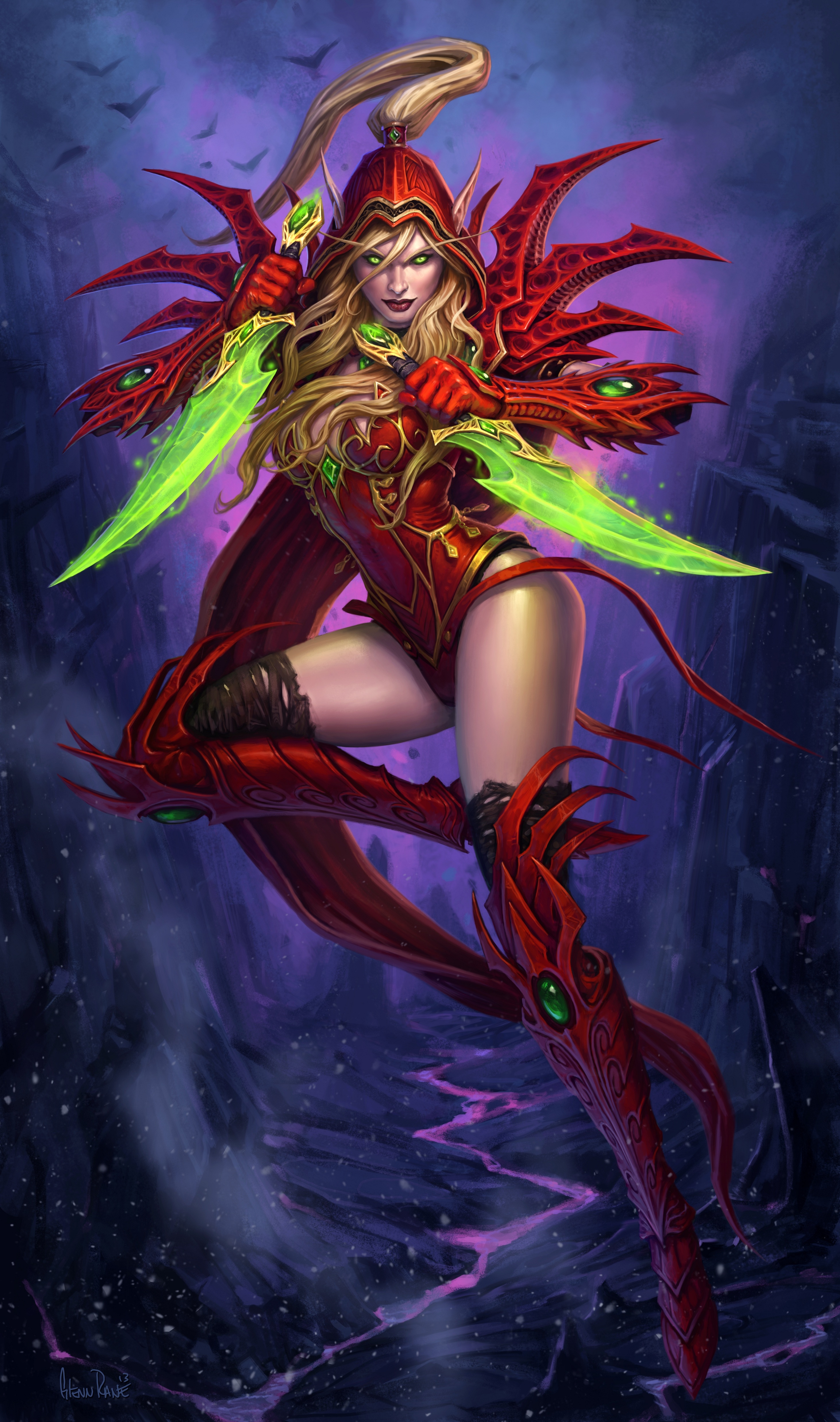 This is one of three versions of Valeera, a rogue hero the player can control in Book of Heroes.